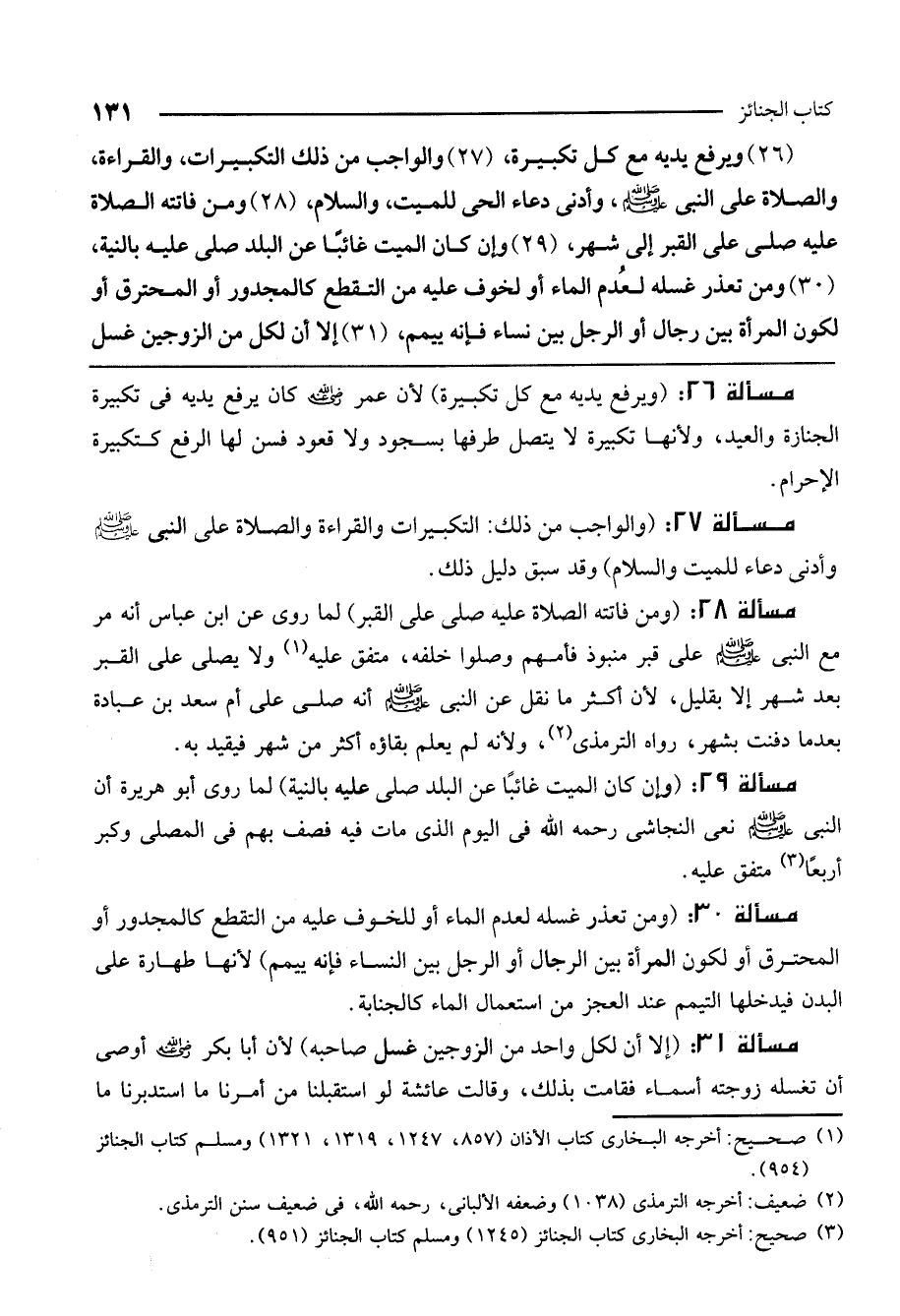 (27) والواجب من ذلك التكبيرات، والقراءة، والصلاة على النبي - صَلَّى اللَّهُ عَلَيْهِ وَسَلَّمَ -، وأدنى دعاء الحي للميت، والسلام،