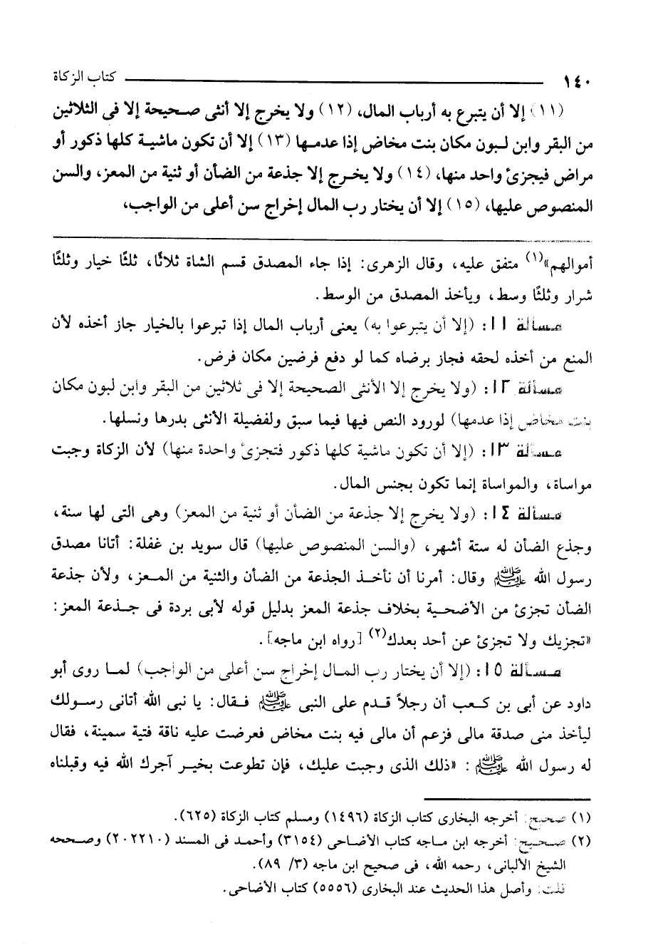 (14) ولا يخرج إلا جذعة من الضأن أو ثنية من المعز والسن المنصوص عليها