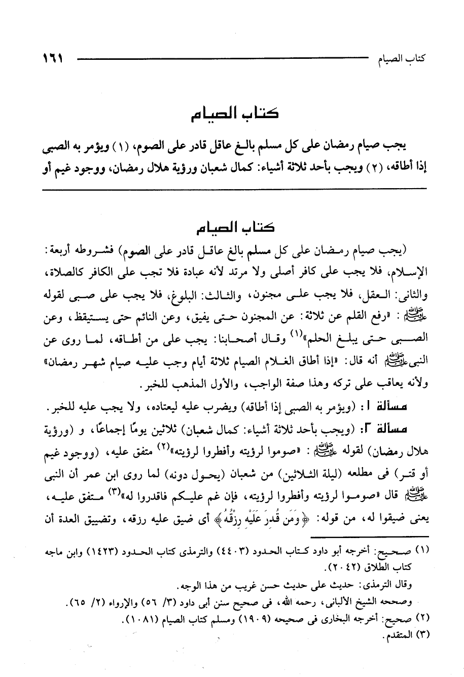 كتاب الصيام يجب صيام رمضان على كل مسلم بالغ عاقل قادر على الصوم