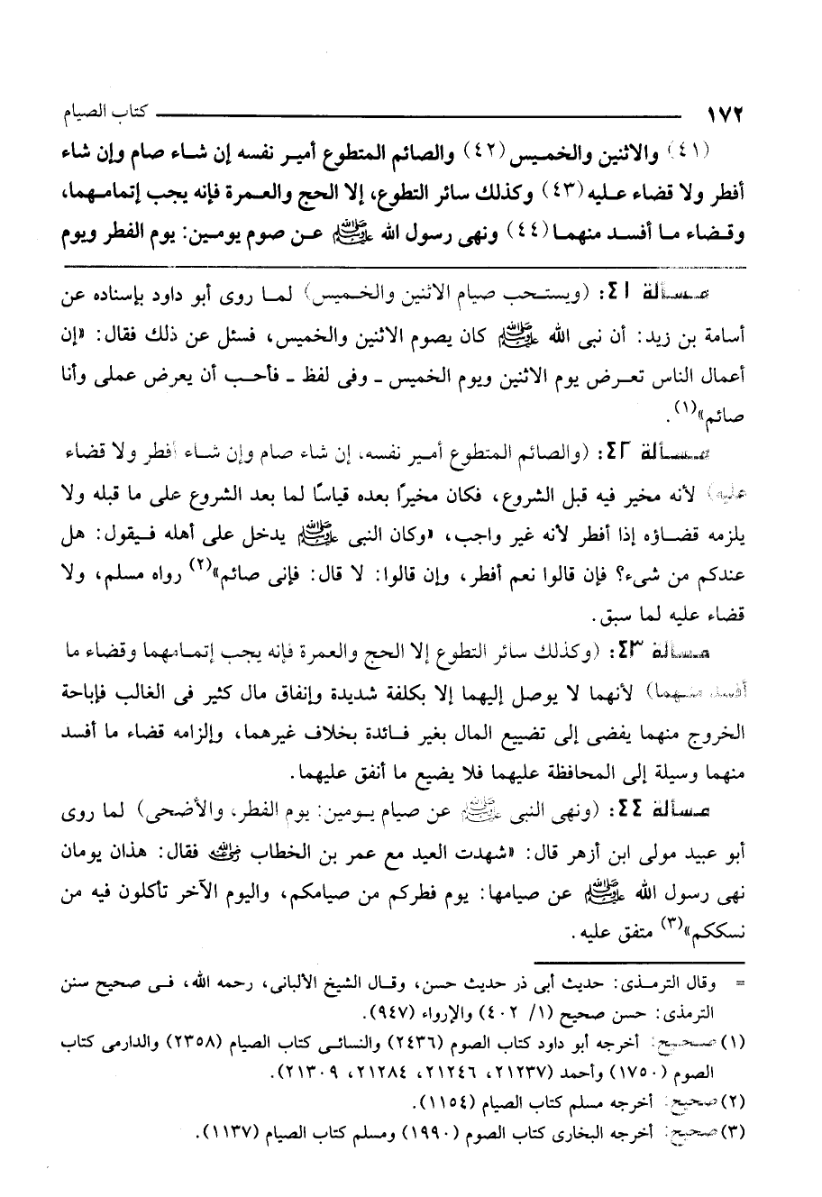 « (44) ونهى رسول الله - صَلَّى اللَّهُ عَلَيْهِ وَسَلَّمَ - عن صوم يومين: يوم الفطر، ويوم