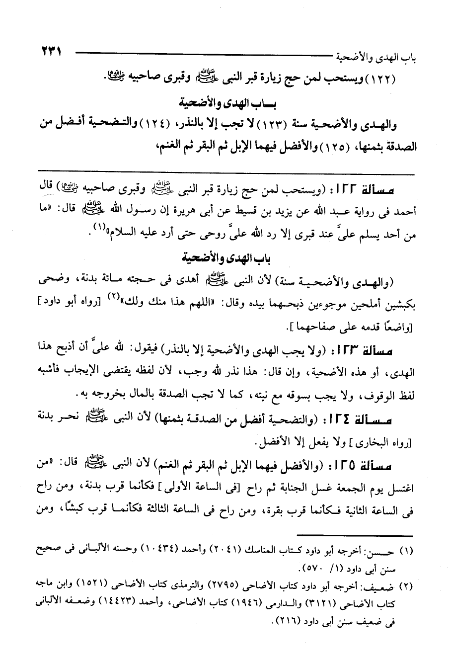 (122) ويستحب لمن حج زيارة قبر النبي - صَلَّى اللَّهُ عَلَيْهِ وَسَلَّمَ - وقبري صاحبيه - رَضِيَ اللَّهُ عَنْهُمَا -
