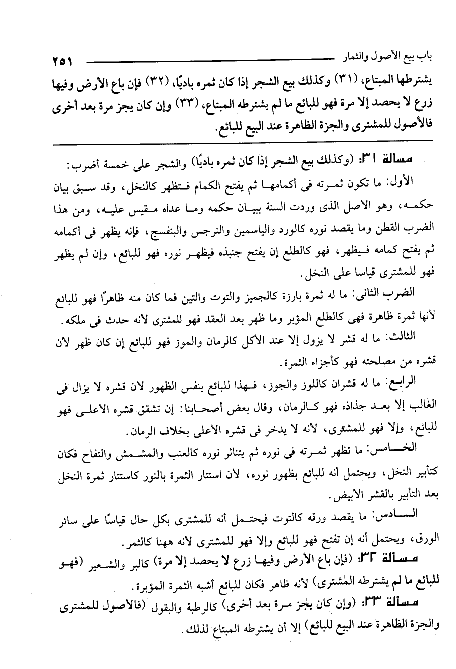 ـــــــــــــــــــــــــــــQمسألة 31: (وكذلك بيع الشجر إذا كان ثمره باديًا) والشجر على خمسة أضرب: