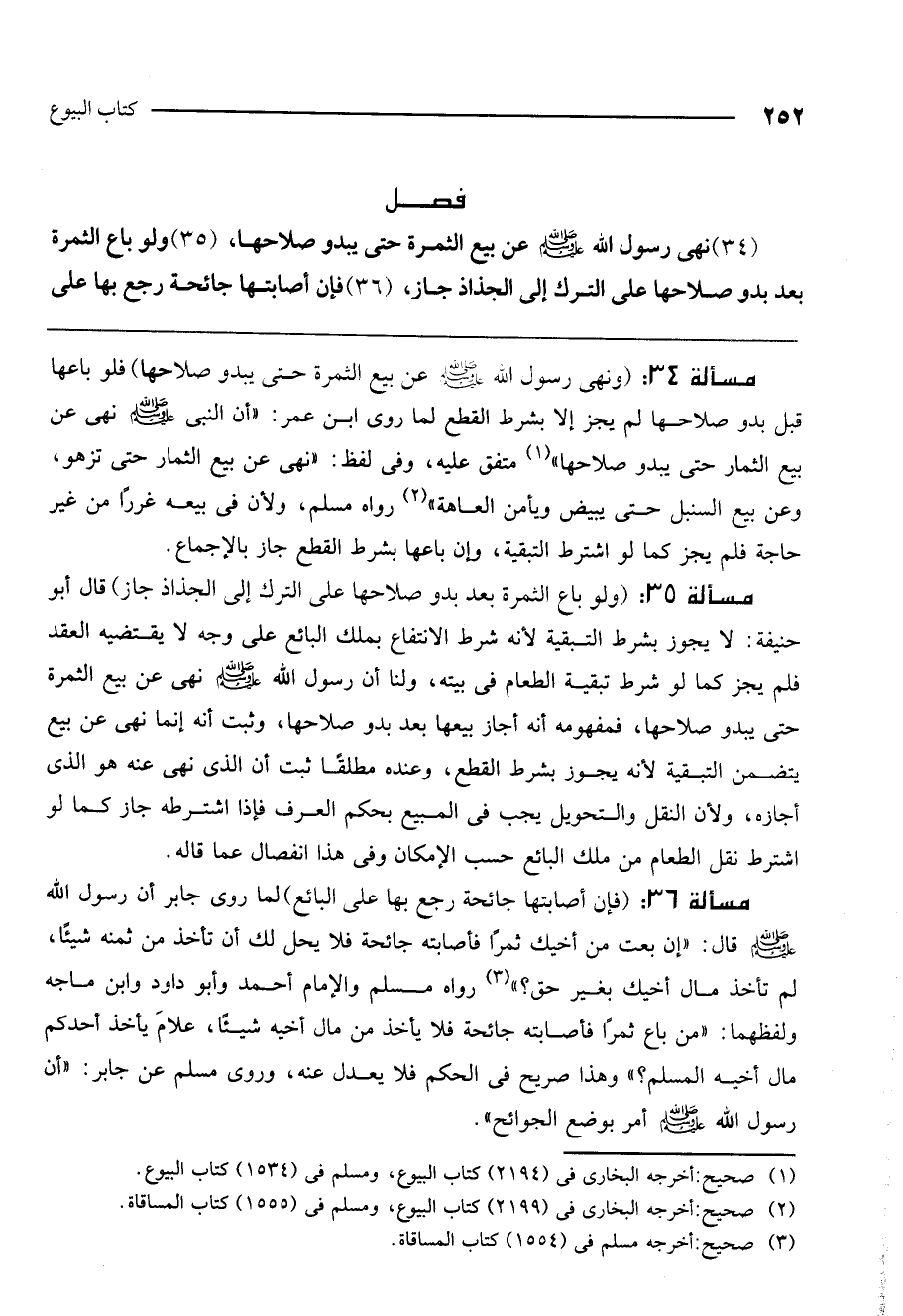 فصل « (34) نهى رسول الله - صَلَّى اللَّهُ عَلَيْهِ وَسَلَّمَ - عن بيع الثمرة حتى يبدو صلاحها»
