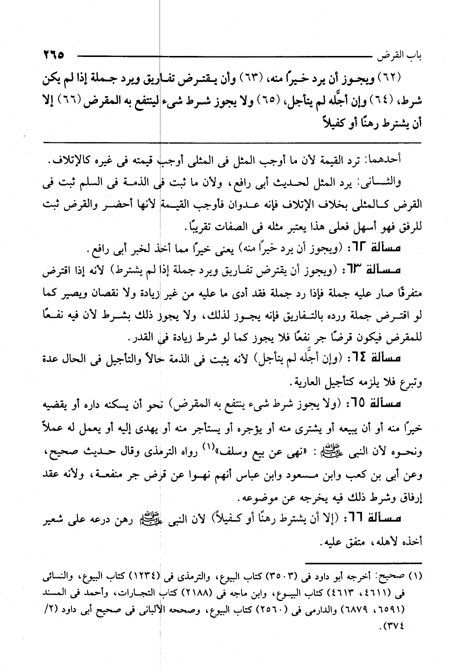 (65) ولا يجوز شرط شيء لينتفع به المقرض