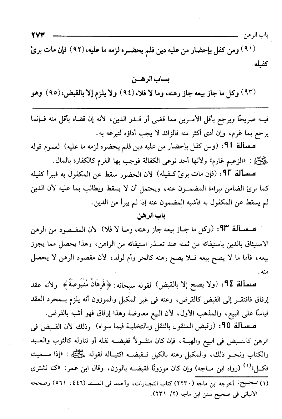 باب الرهن (93) وكل ما جاز بيعه جاز رهنه، وما لا فلا