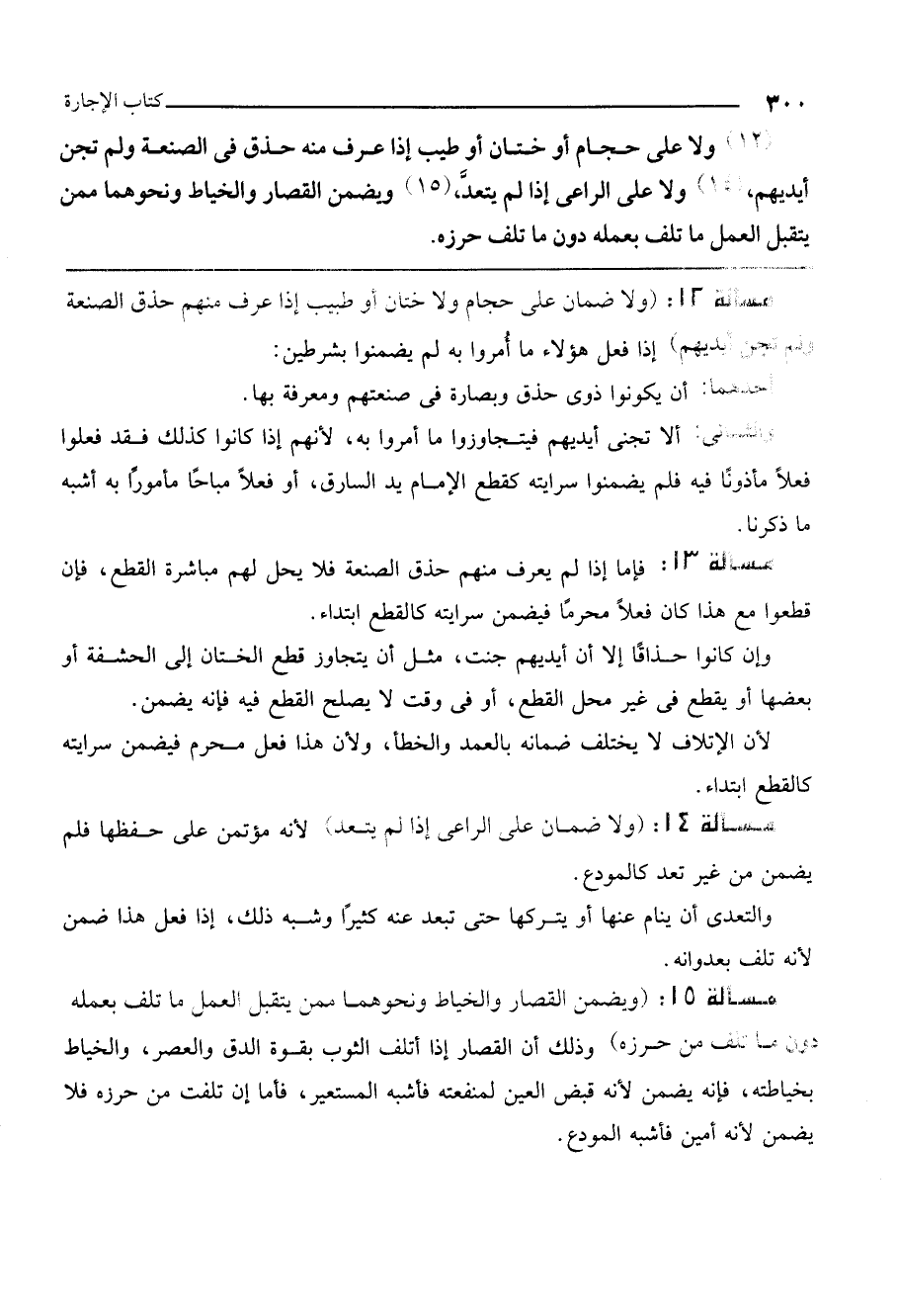 (12) ولا على حجام أو ختان أو طبيب إذا عرف منه حذق في الصنعة ولم تجن أيديهم