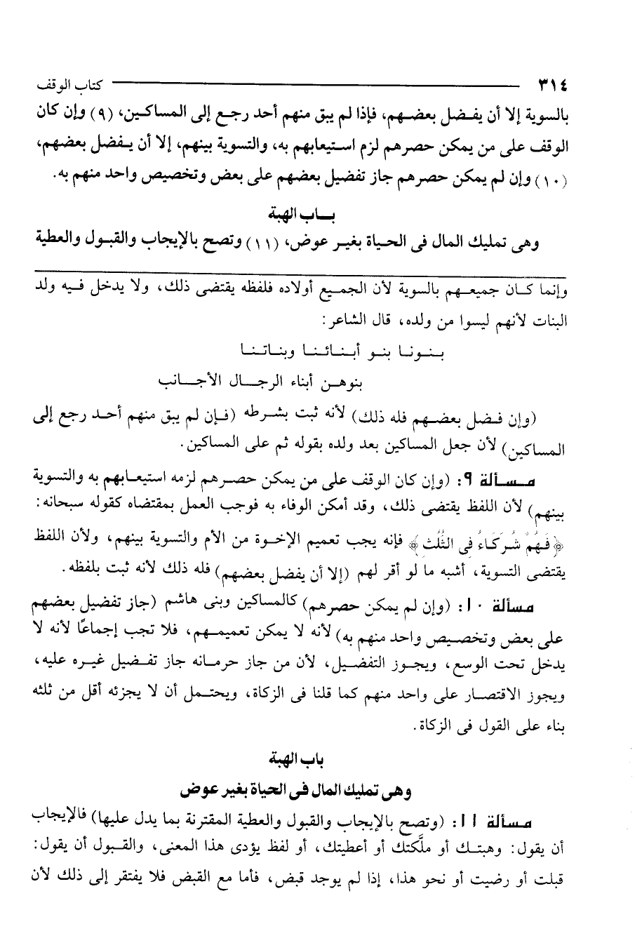 (9) وإن كان الوقف على من يمكن حصرهم لزم استيعابهم به، والتسوية بينهم، إلا أن يفضل بعضهم