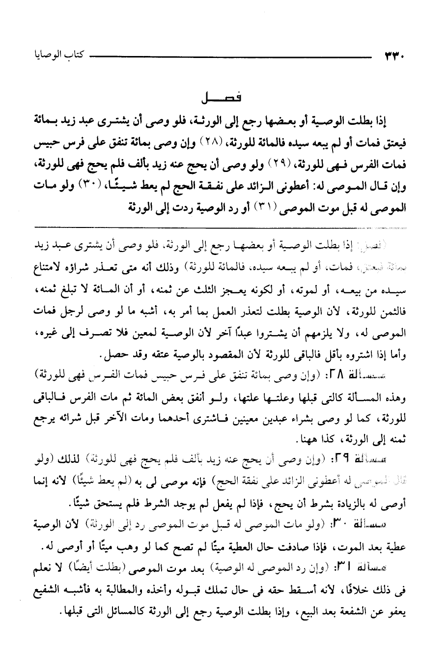 (31) أو رد الوصية ردت إلى الورثة