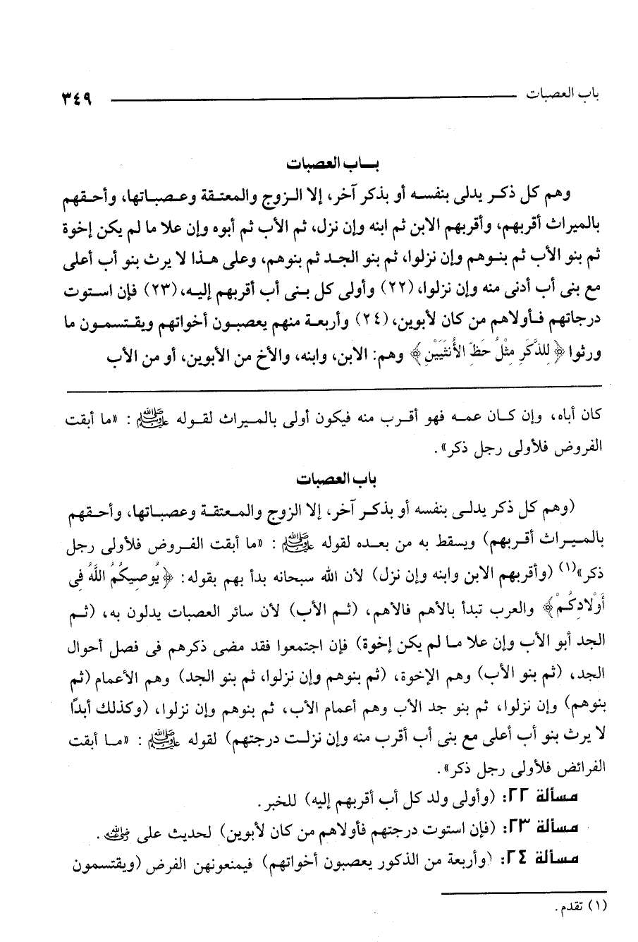 (24) وأربعة منهم يعصبون أخواتهم ويقتسمون ما ورثوا {لِلذَّكَرِ مِثْلُ حَظِّ الأُنْثَيَيْنِ} [النساء: 11] وهم: الابن، وابنه، والأخ من الأبوين، أو من الأب)