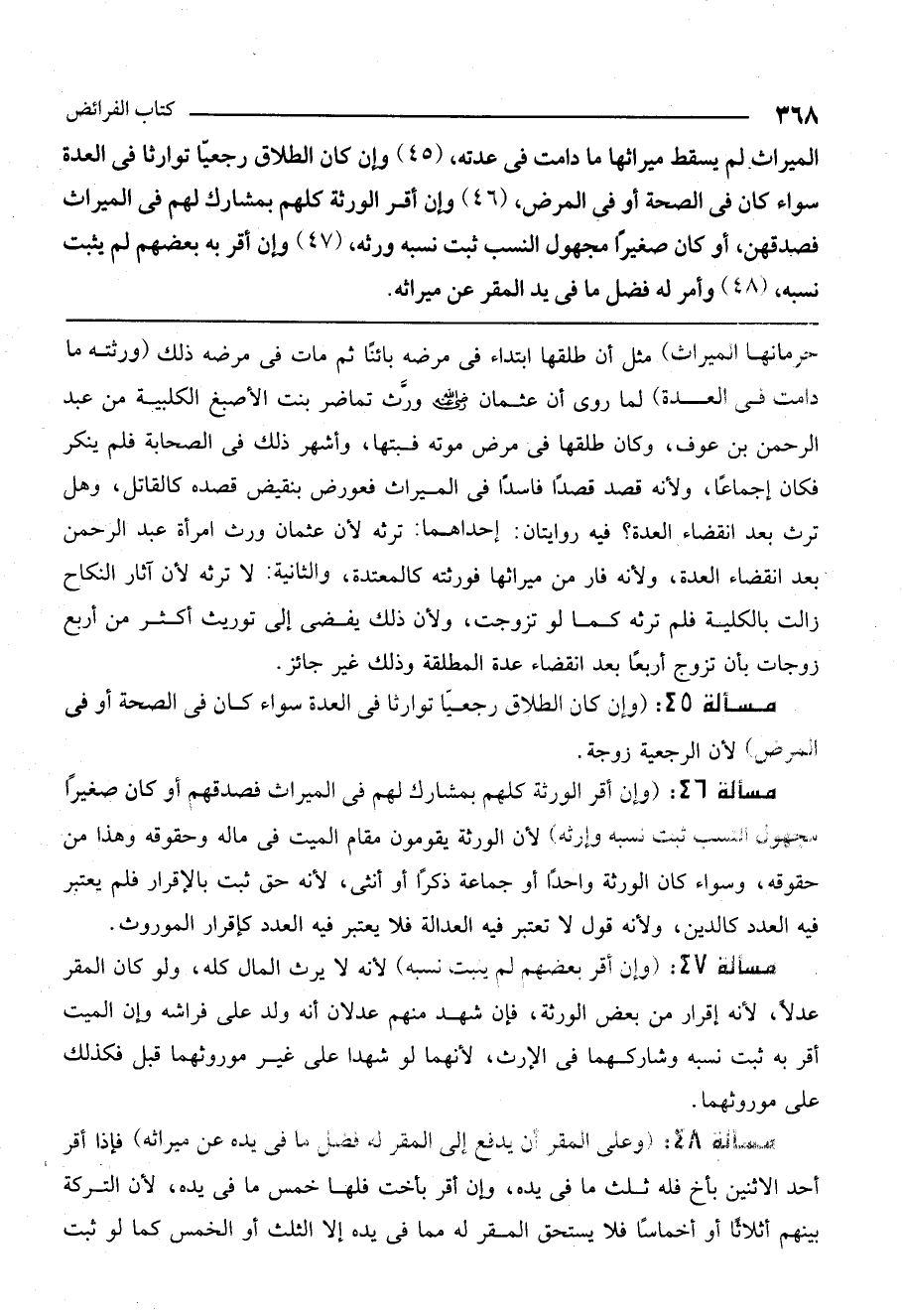 (45) وإن كان الطلاق رجعيًا توارثا في العدة سواء كان في الصحة أو في المرض
