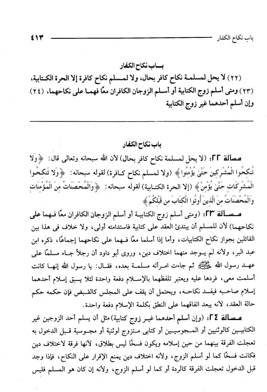 (23) ومتى أسلم زوج الكتابية أو أسلم الزوجان الكافران معًا فهما على نكاحهما