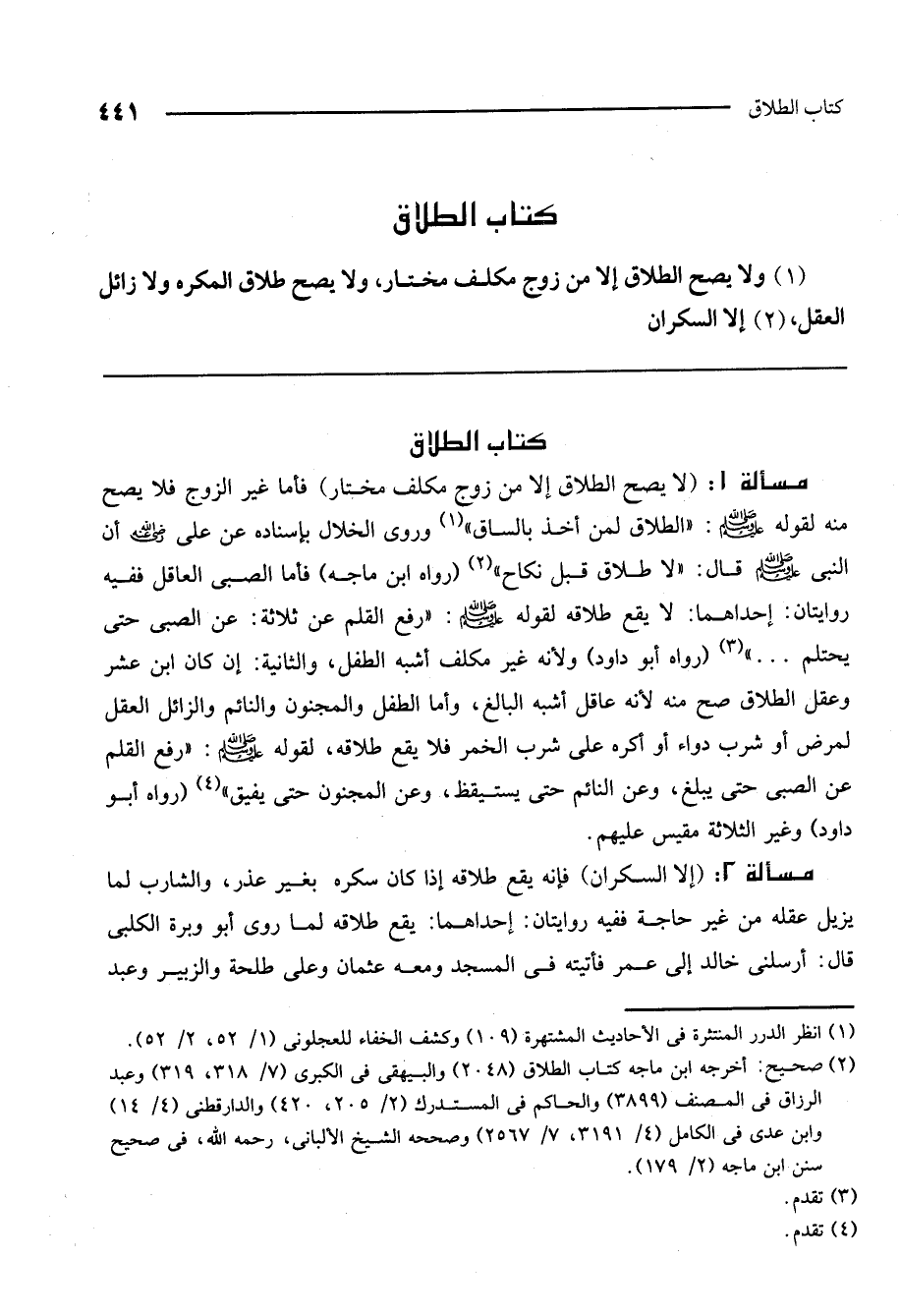 كتاب الطلاق (1) ولا يصح الطلاق إلا من زوج مكلف مختار، ولا يصح طلاق المكره ولا زائل العقل