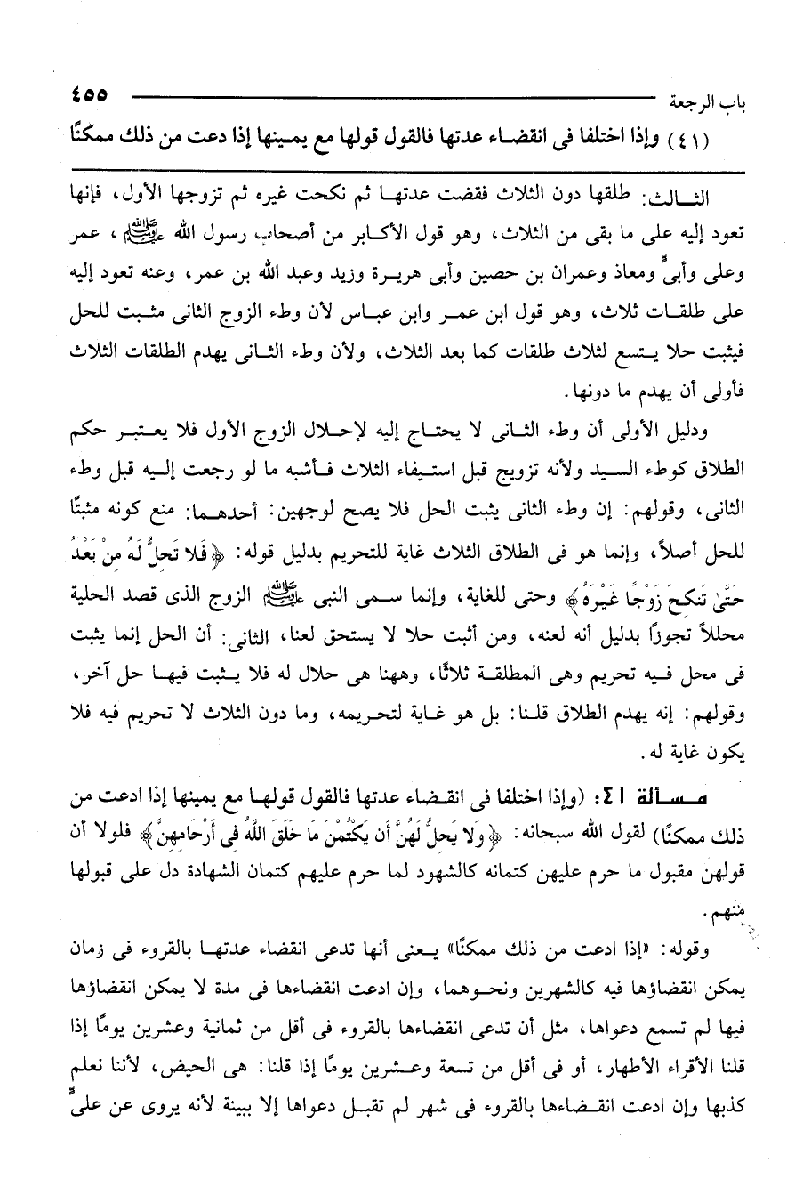 (41) وإذا اختلفا في انقضاء عدتها فالقول قولها مع يمينها إذا دعت من ذلك ممكنا