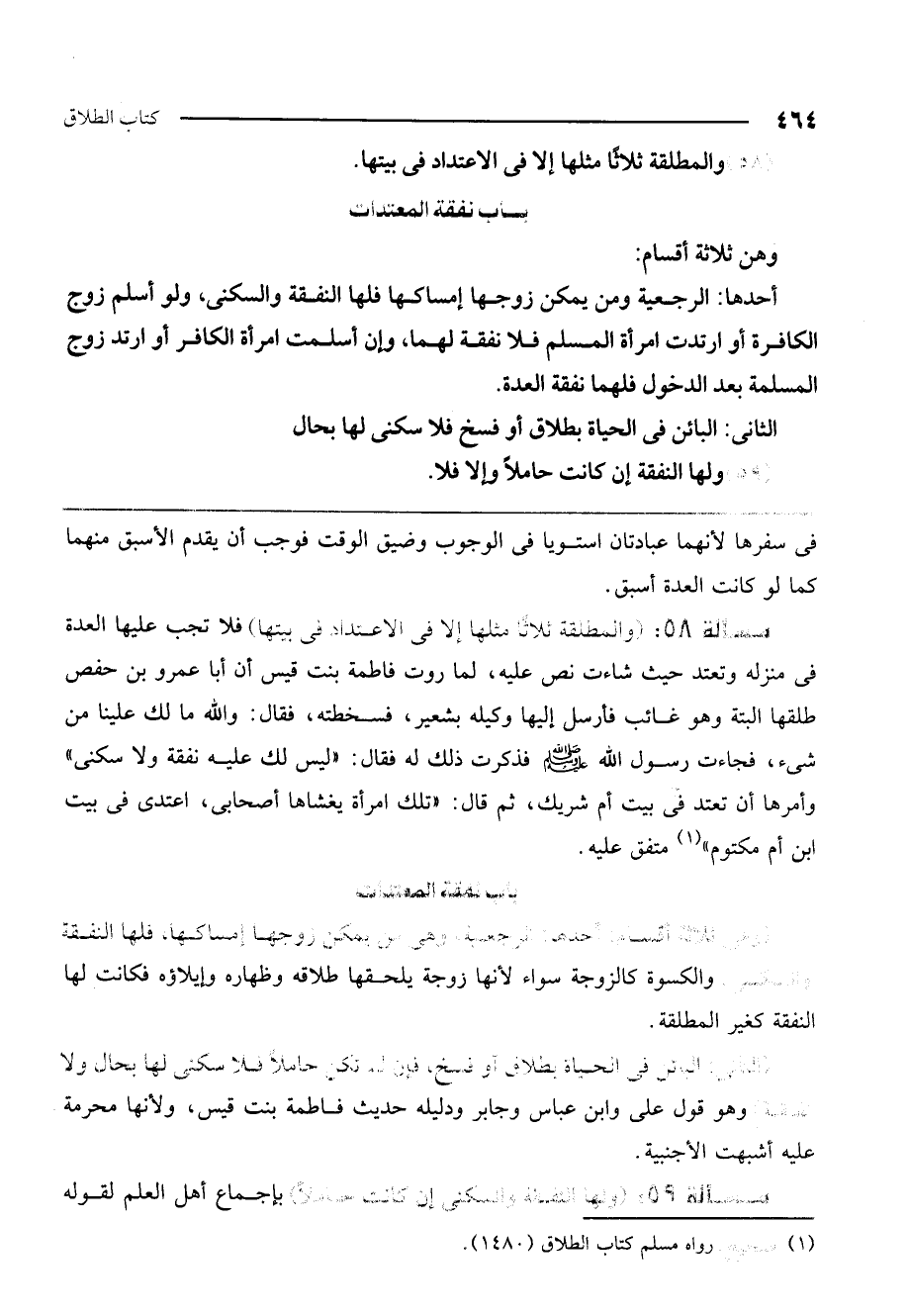 باب نفقة المعتدات وهن ثلاثة أقسام: