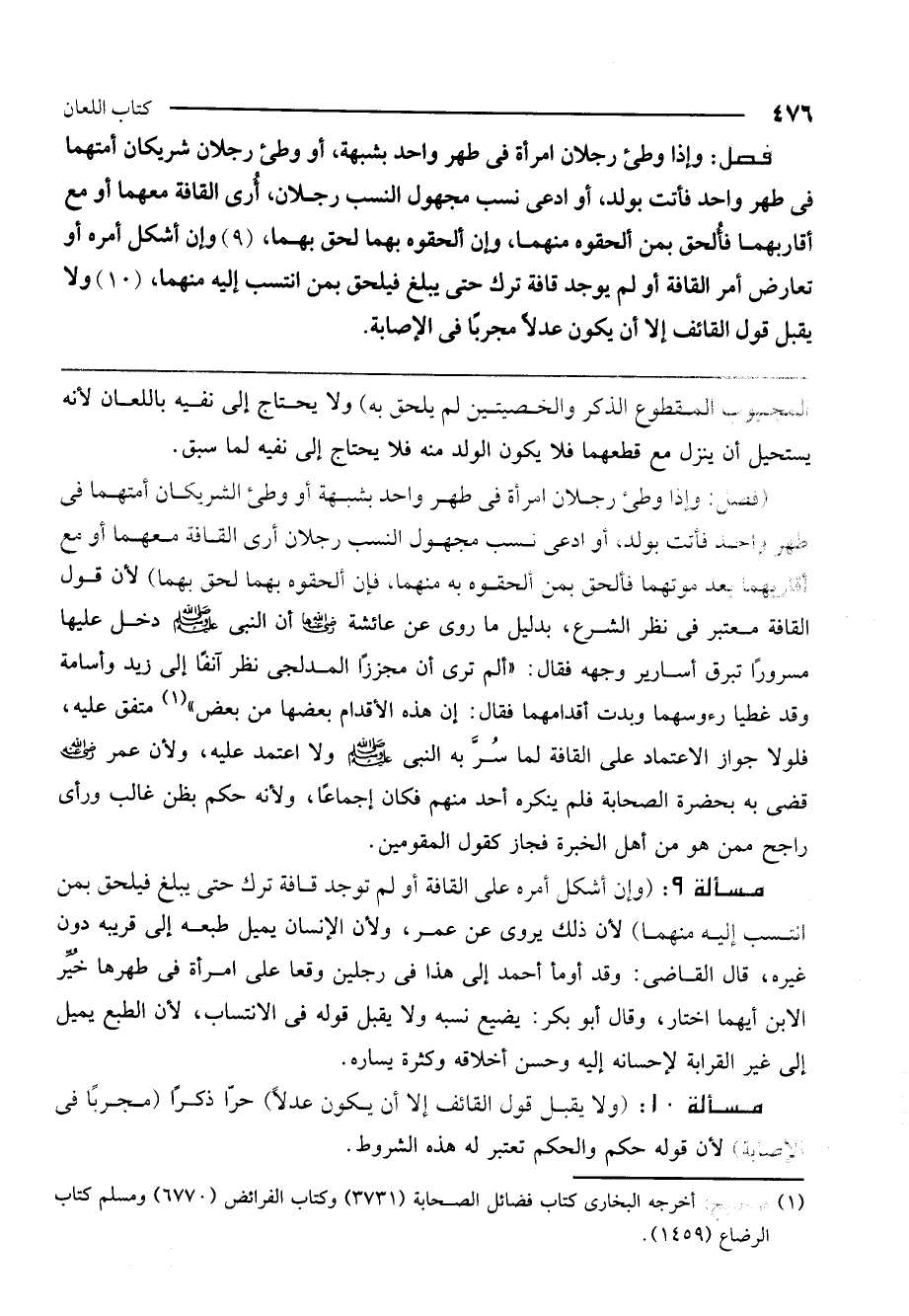 (10) ولا يقبل قول القائف إلا أن يكون عدلًا مجربًا في الإصابة