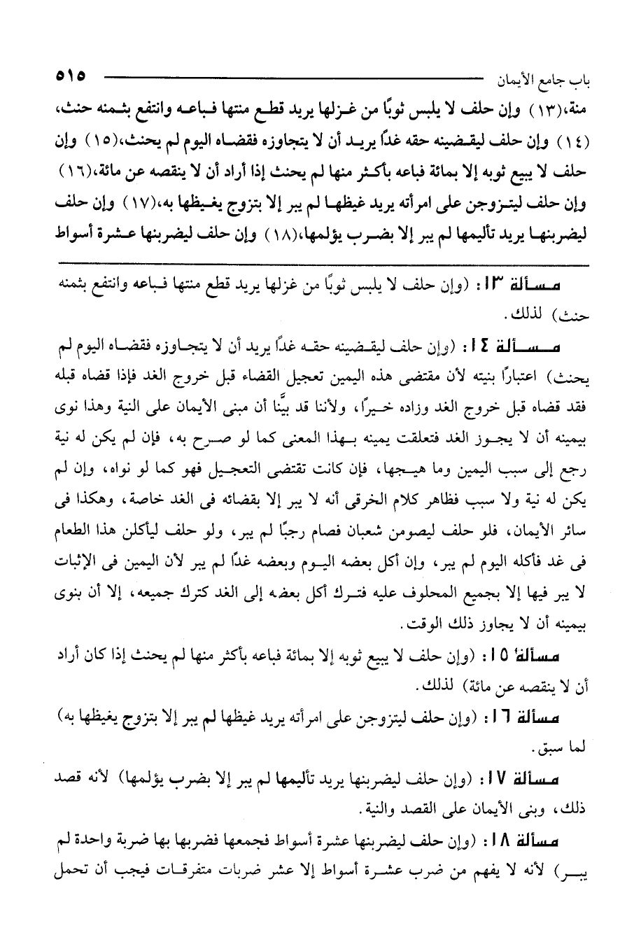ـــــــــــــــــــــــــــــQمسألة 13: (وإن حلف لا يلبس ثوبا من غزلها يريد قطع منتها فباعه وانتفع بثمنه حنث) لذلك.