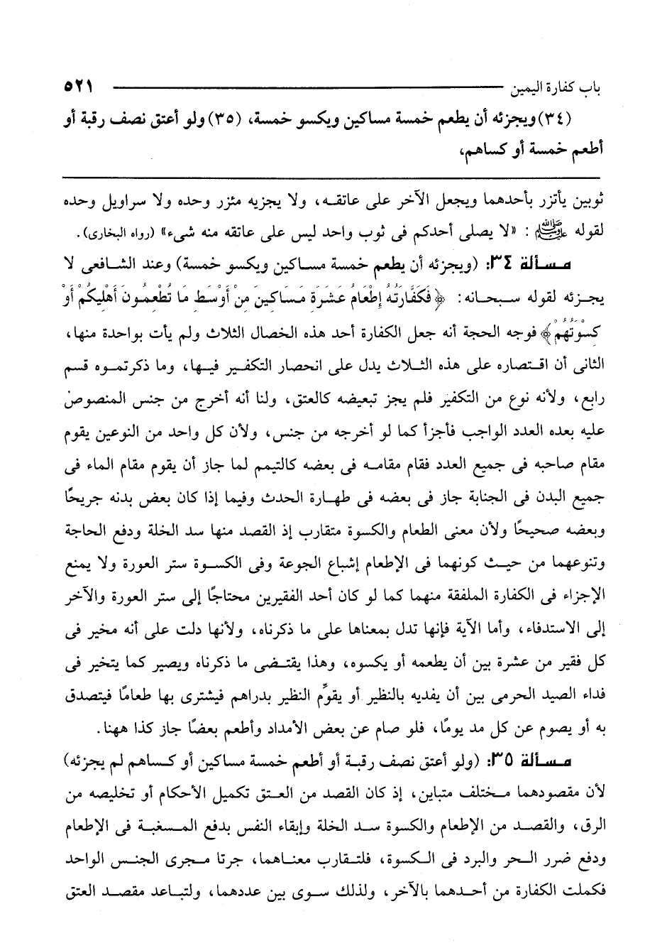 (34) ويجزئه أن يطعم خمسة مساكين ويكسو خمسة