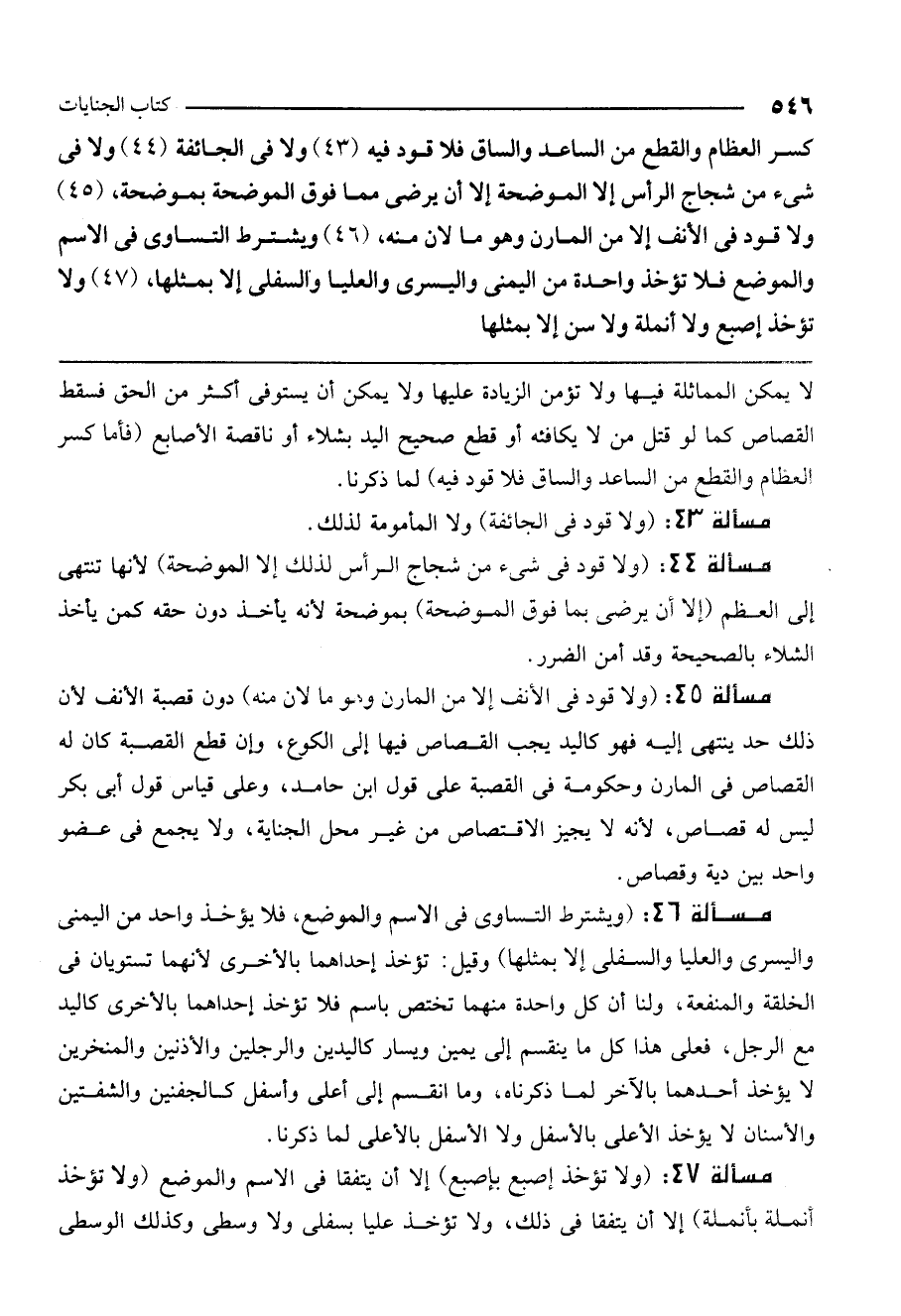 (47) ولا تؤخذ إصبع ولا أنملة ولا سن إلا بمثلها