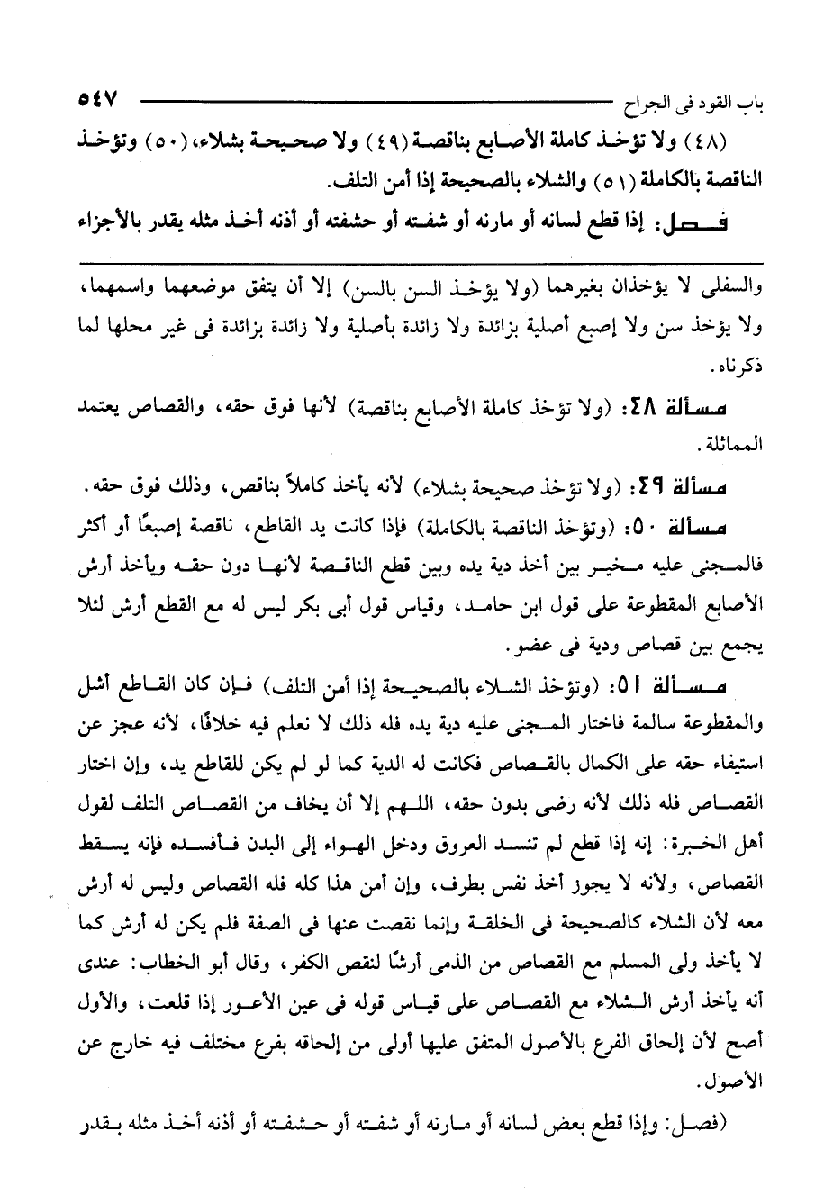 (48) ولا تؤخذ كاملة الأصابع بناقصة