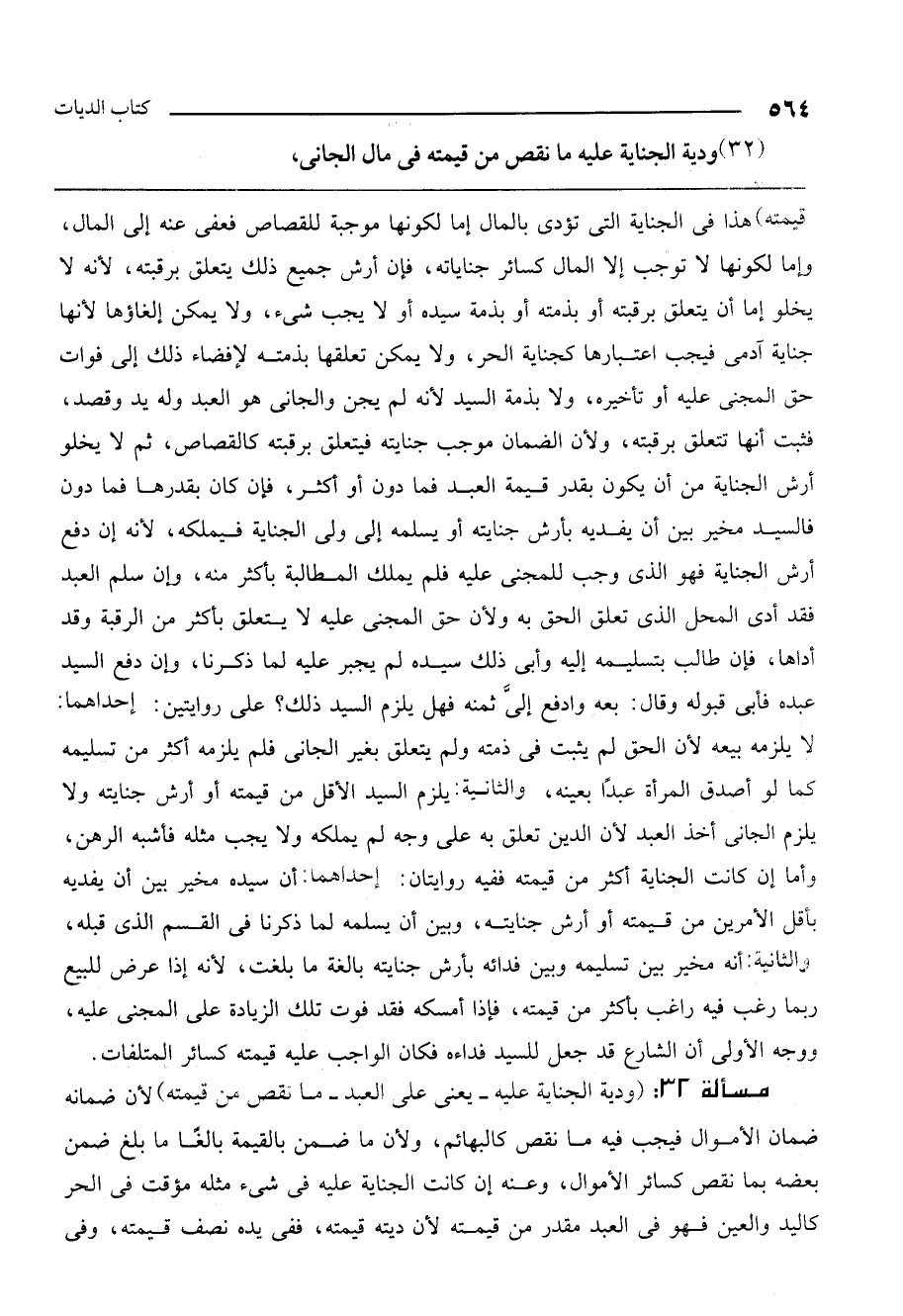 (32) ودية الجناية عليه ما نقص من قيمته في مال الجاني
