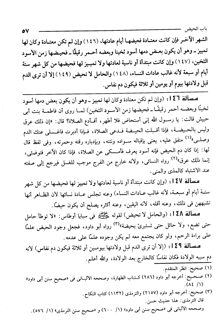 (148) إلا أن ترى الدم قبل ولادتها بيوم أو يومين أو ثلاثة فيكون دم نفاس