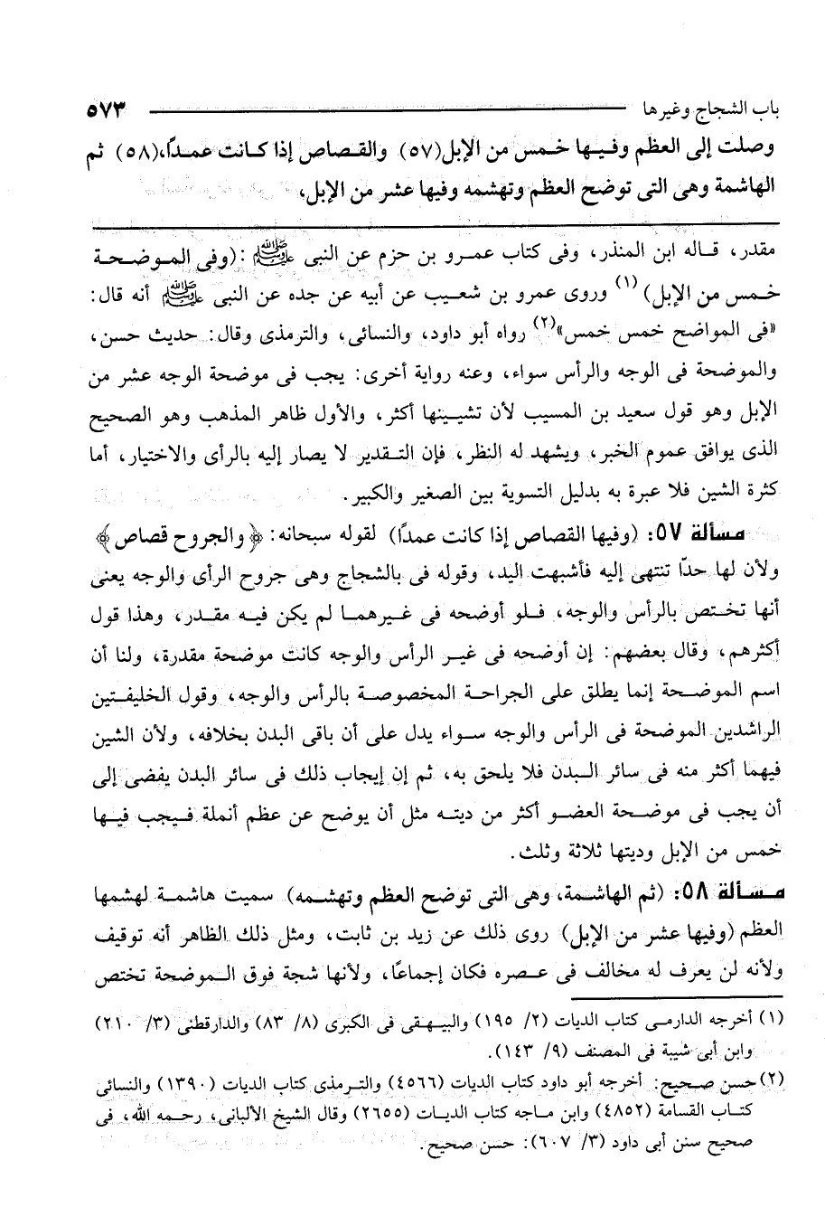 (58) ثم الهاشمة، وهي التي توضح العظم وتهشمه وفيها عشر من الإبل