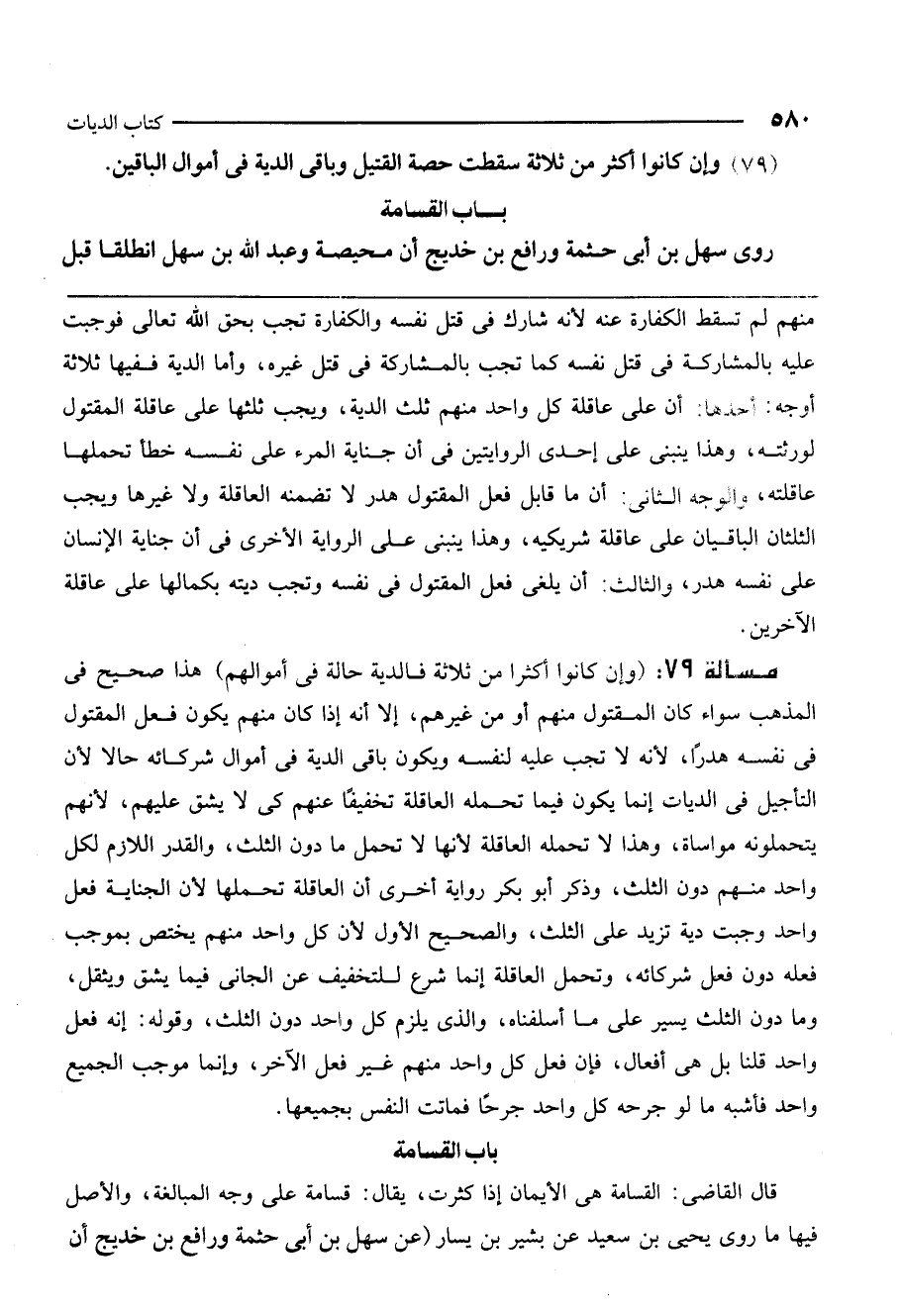 (79) وإن كانوا أكثر من ثلاثة سقطت حصة القتيل وباقي الدية في أموال الباقين