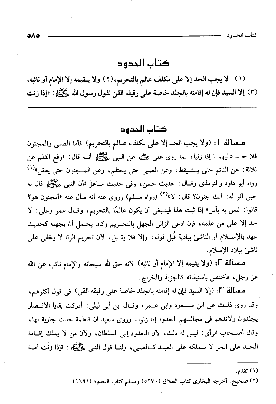 كتاب الحدود (1) لا يجب الحد إلا على مكلف عالم بالتحريم