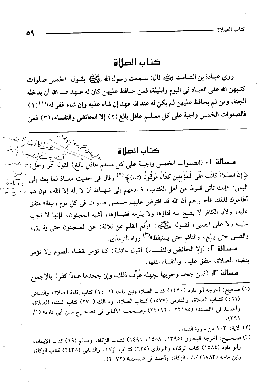 مسألة 1: (الصلوات الخمس واجبة على كل مسلم عاقل بالغ) لقوله عز وجل: {إِنَّ الصَّلاةَ كَانَتْ عَلَى الْمُؤْمِنِينَ كِتَابًا مَوْقُوتًا} [النساء: 103] وقال في حديث معاذ لما بعثه إلى اليمن: «إنك تأتي قوماً من أهل الكتاب، فادعهم إلى شهادة أن لا إله إلا الله، فإن هم أطاعوك لذلك فأخبرهم أن الله قد افترض عليهم خمس صلوات في كل يوم وليلة» متفق عليه، ولأن الكافر لا يصح منه أداؤها ولا يلزمه قضاؤها، أشبه المجنون، فإنها لا تجب عليه ولا على الصبي، لقوله - صَلَّى اللَّهُ عَلَيْهِ وَسَلَّمَ -: «رفع القلم عن ثلاثة: عن المجنون حتى يفيق، والصبي حتى يبلغ، والنائم حتى يستيقظ» رواه الترمذي.