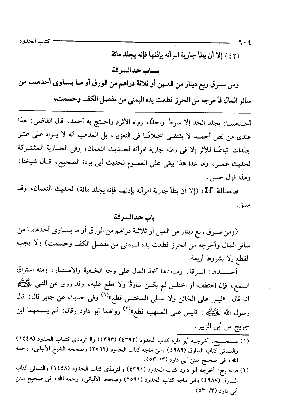 مسألة 42: (إلا أن يطأ جارية امرأته بإذنها فإنه يجلد مائة) لحديث النعمان، وقد سبق.