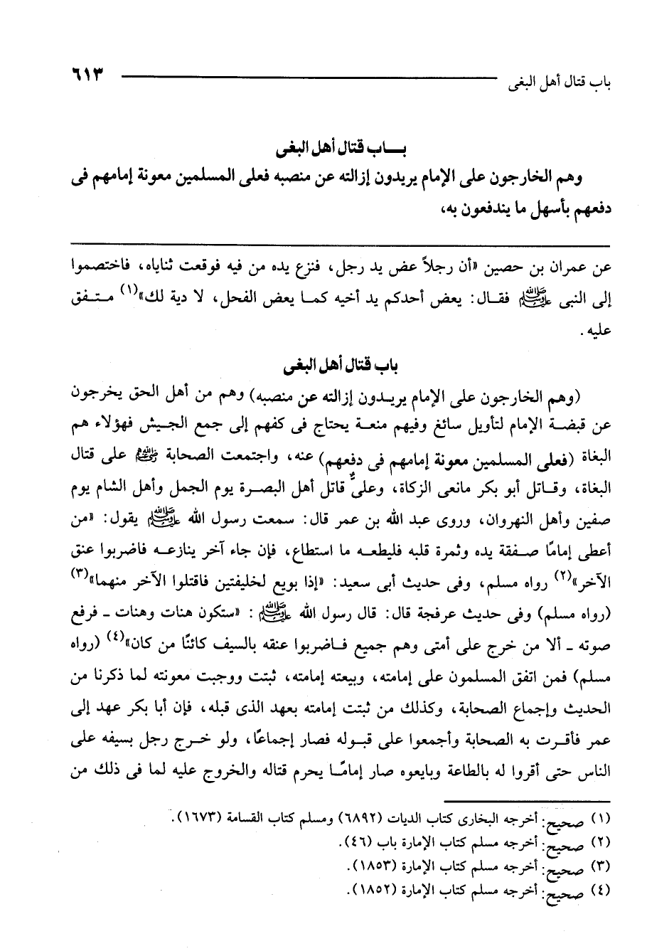 باب قتال أهل البغي وهم الخارجون على الإمام يريدون إزالته عن منصبه فعلى المسلمين معونة إمامهم في دفعهم بأسهل ما يندفعون به