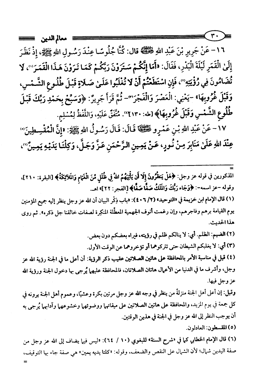17 - عَنْ عَبْدِ اللهِ بْنِ عَمْرٍو - رضي الله عنهما - قَالَ: قَالَ رَسُولُ اللهِ - صلى الله عليه وسلم -: «إِنَّ الْمُقْسِطِينَ (¬5) عِنْدَ اللهِ عَلَى مَنَابِرَ مِنْ نُورٍ، عَنْ يَمِينِ الرَّحْمَنِ عَزَّ وَجَلَّ، وَكِلْتَا يَدَيْهِ يَمِينٌ (¬6)،