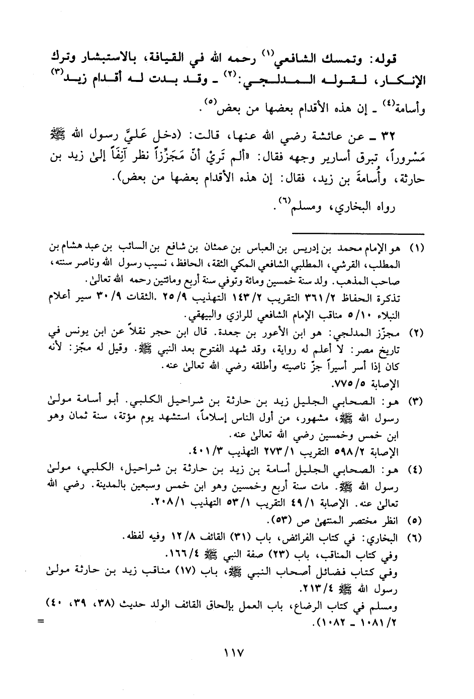 6 البخاري: في كتاب الفرائض، باب "31" القائف 8/ 12 وفيه لفظه.