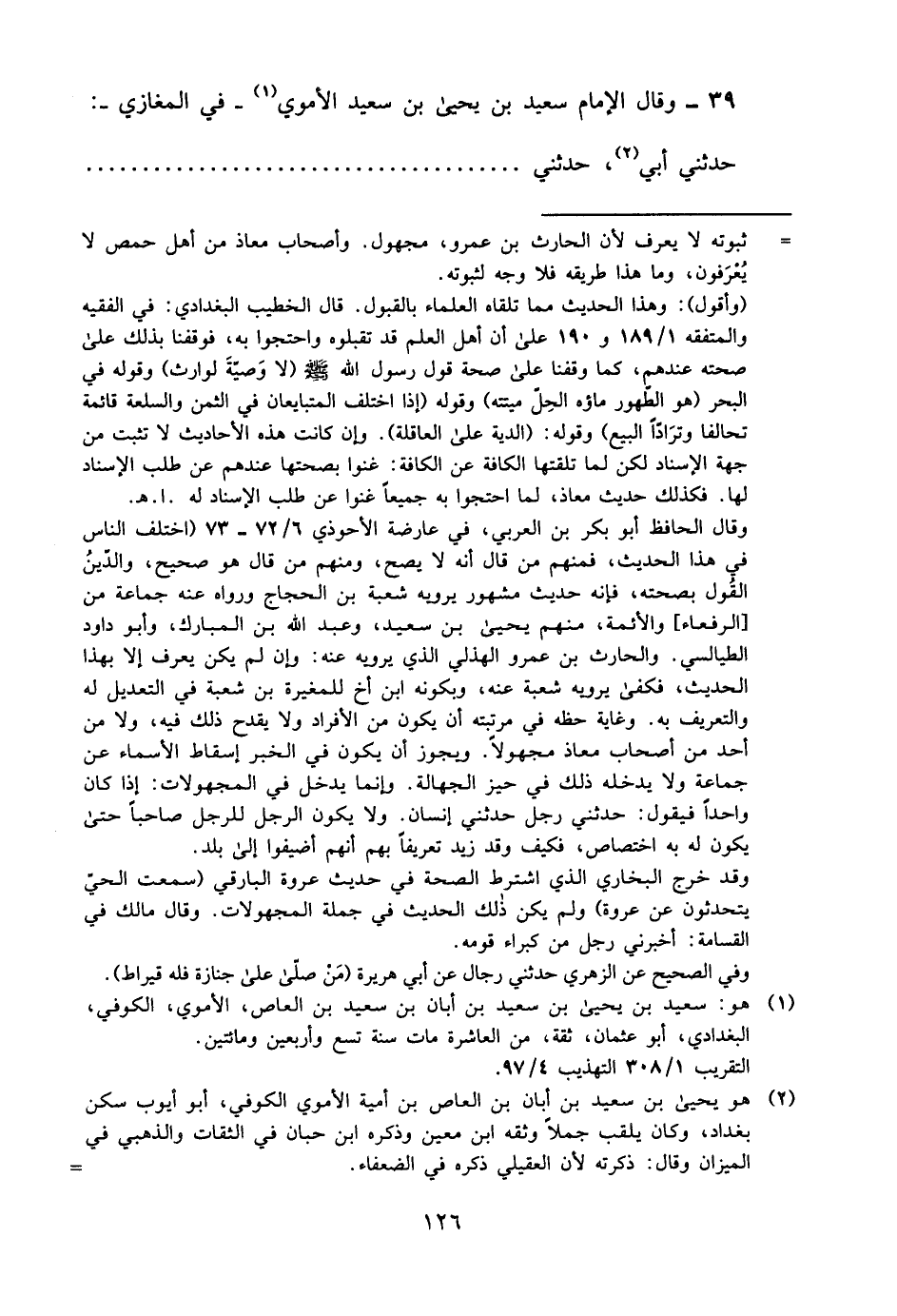 39- وقال الإمام سعيد بن يحيى بن سعيد الأموي1, في المغازي: حدثني أبي2، حدثني.............. ...........................