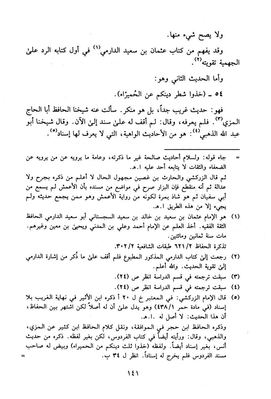 1 هو الإمام عثمان بن سعيد بن خالد بن سعيد السجستاني, أبو سعيد الدارمي الحافظ, الثقة, الفقيه. أخذ العلم عن الإمام أحمد وعلي بن المدني ويحيى بن معين وغيرهم. مات سنة ثمانين ومائتين.
