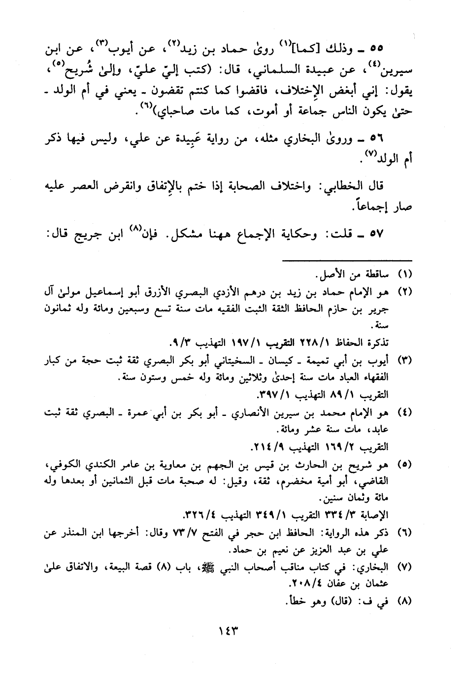 56- وروى البخاري مثله، من رواية عبيدة عن علي، وليس فيها ذكر أم الولد7.