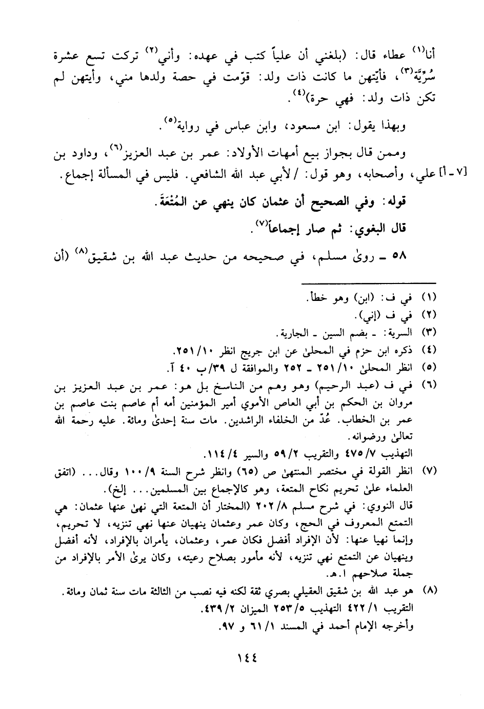 58- روى مسلم، في صحيحه من حديث عبد الله بن شقيق8 "أن