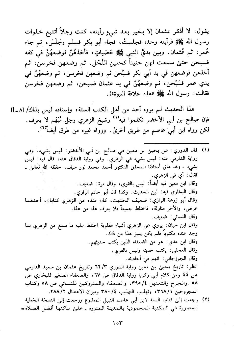 1 قال الدوري: عن يحيى بن معين في صالح بن أبي الأخضر: ليس بشيء. وفي رواية الدارمي عنه: ليس بشيء في الزهري. وفي رواية الدقاق عنه، قال فيه: ليس بشيء, وقد علق أستاذنا المحقق الدكتور أحمد محمد نور سيف -حفظه الله تعالى- فقال: أي: في الزهري.