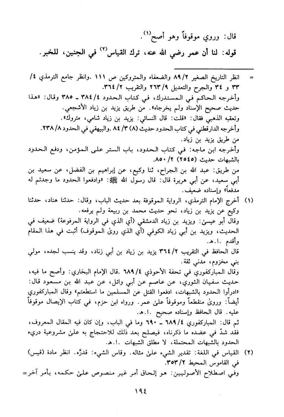 ثم قال المباركفوري 4/ 689, 690: وما في الباب، وإن كان فيه المقال المعروف، فقد شد في عضده ما ذكرنا، فيصلح بعد ذلك للاحتجاج به على مشروعية درء الحدود بالشبهات المحتملة، لا مطلق الشبهات. ا. هـ.