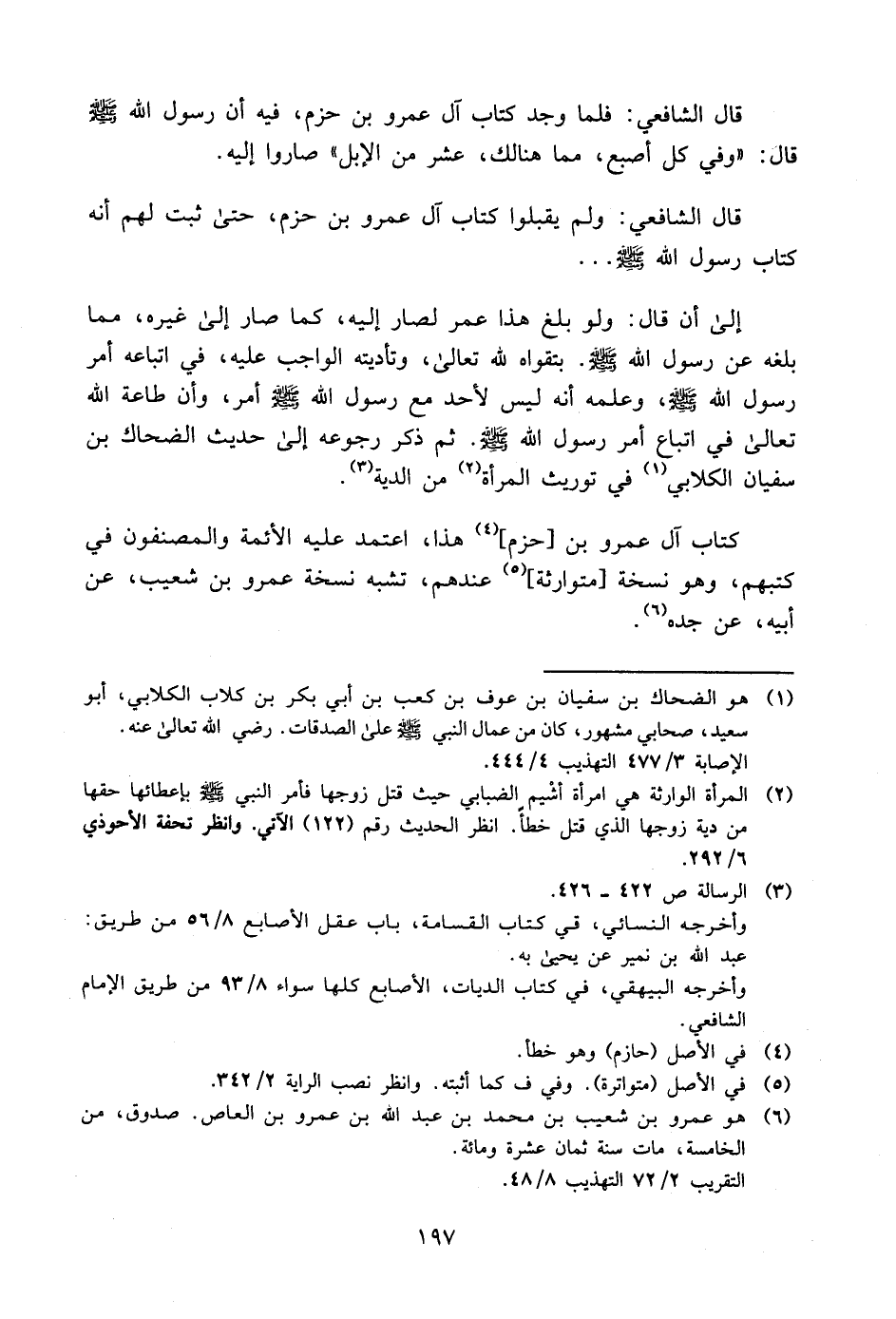 قال الشافعي: ولم يقبلوا كتاب آل عمرو بن حزم، حتى ثبت لهم أنه كتاب رسول الله صلى الله عليه وسلم.