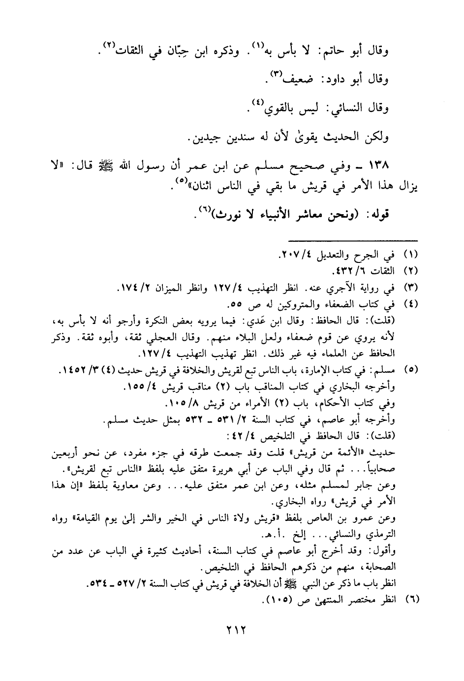 138- وفي صحيح مسلم عن ابن عمر, أن رسول الله -صلى الله عليه وسلم- قال: "لا يزال هذا الأمر في قريش, ما بقي في الناس اثنان" 5.
