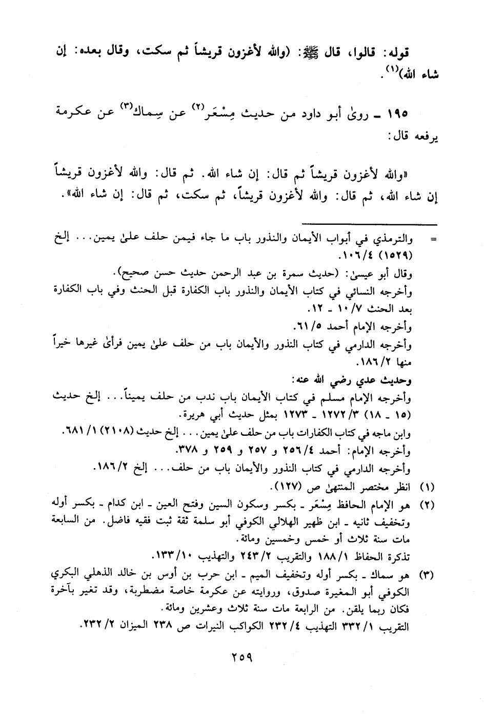 "والله لأغزون قريشا" ثم قال: "إن شاء الله". ثم قال: "والله لأغزون قريشا إن شاء الله"، ثم قال: "والله لأغزون قريشا" ثم سكت، ثم قال: "إن شاء الله".