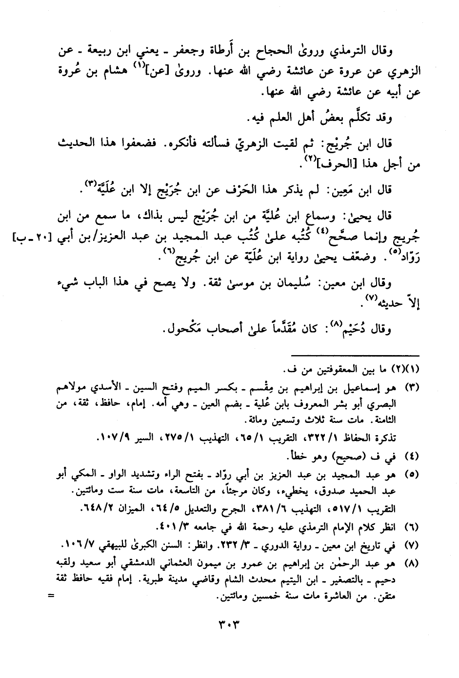 6 انظر كلام الإمام الترمذي -عليه رحمة الله- في جامعة 3/ 401.