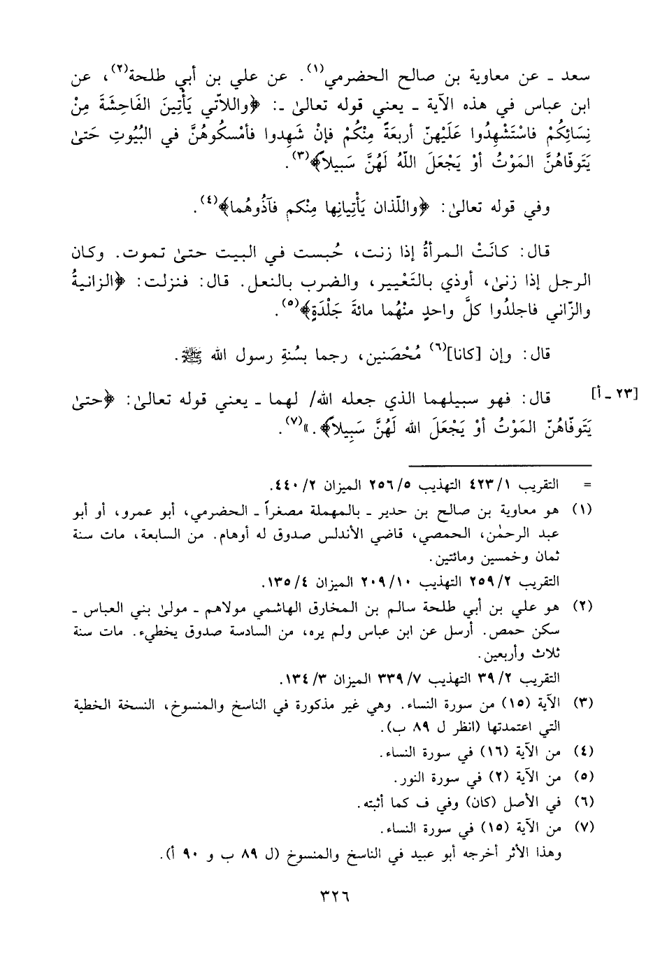 3 الآية "15" من سورة النساء, وهي غير مذكورة في الناسخ والمنسوخ، النسخة الخطية التي اعتمدتها "انظر ل89 ب".