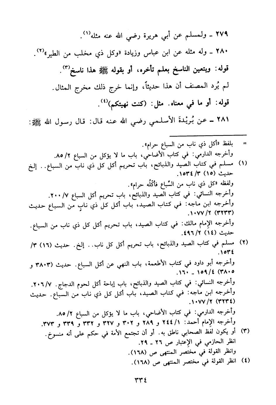 280- وله مثله عن ابن عباس, وزيادة: "وكل ذي مخلب من الطير"2.