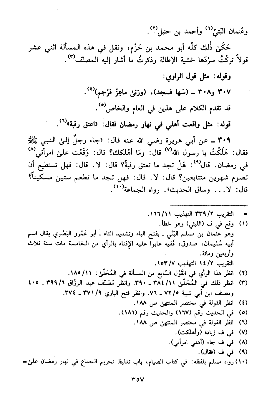 10 رواه مسلم بلفظه: في كتاب الصيام، باب تغليظ تحريم الجماع في نهار رمضان على =