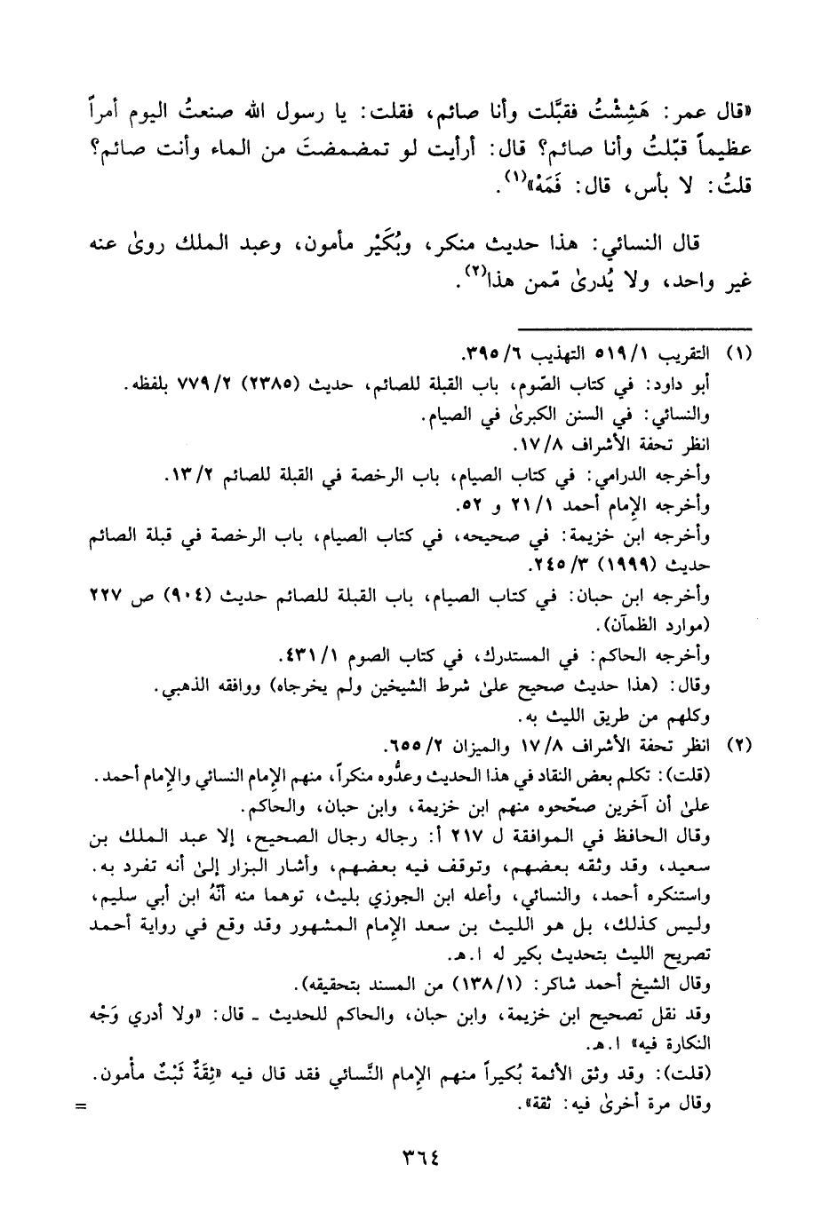 "قلت": تكلم بعض النقاد في هذا الحديث وعدوه منكرا؛ منهم الإمام النسائي والإمام أحمد. على أن آخرين صححوه؛ منهم ابن خزيمة، وابن حبان، والحاكم.