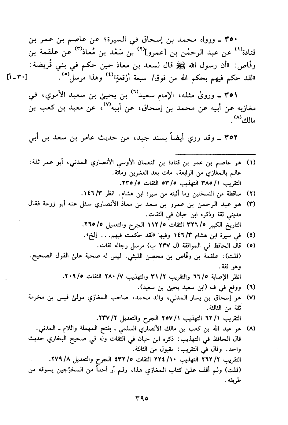 351- وروى مثله، الإمام سعيد6 بن يحيى بن سعيد الأموي، في مغازيه عن أبيه, عن محمد بن إسحاق، عن أبيه7، عن معبد بن كعب بن مالك8.