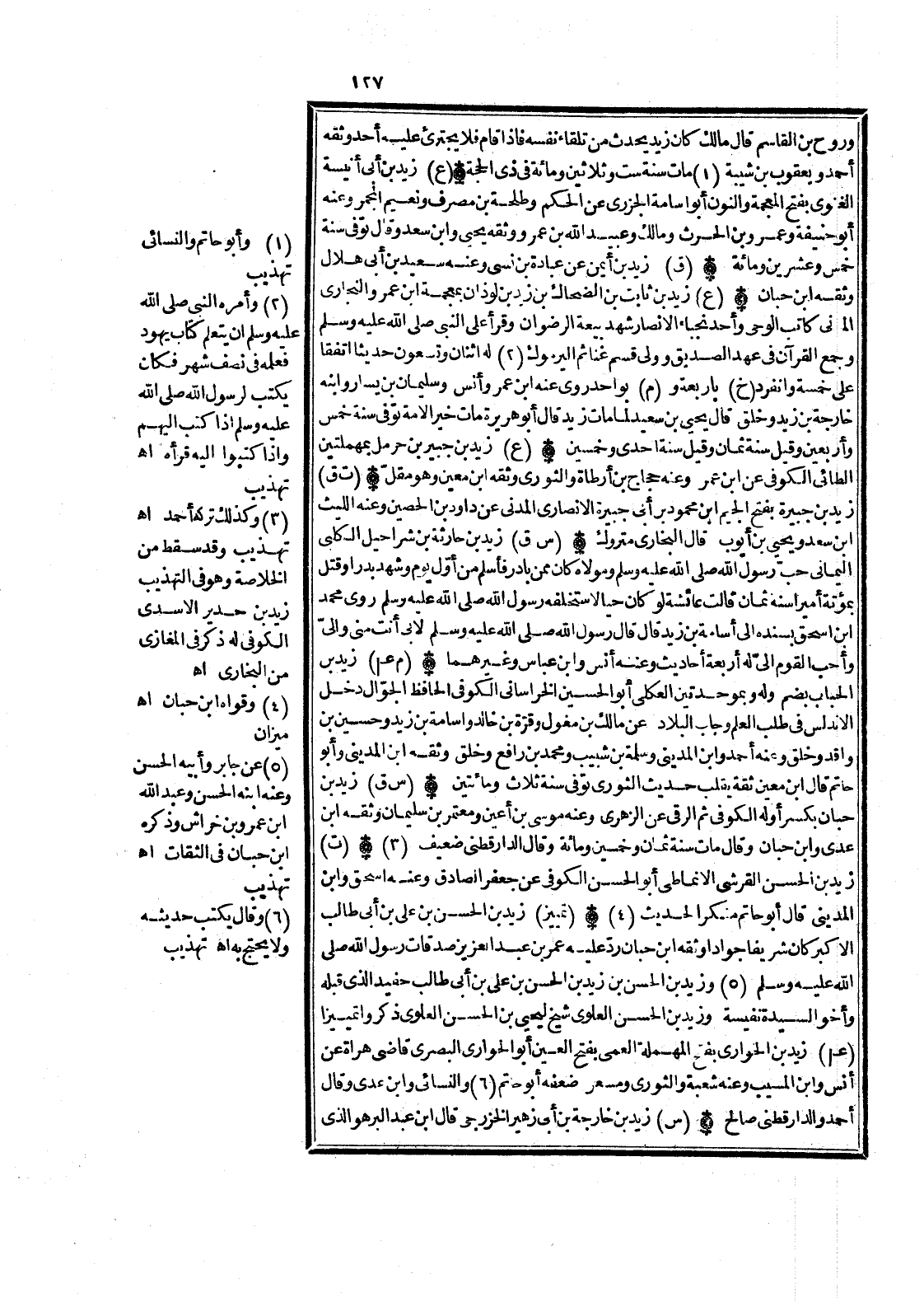 (3) وَكَذَلِكَ تَركه أَحْمد اه تَهْذِيب وَقد سقط من الْخُلَاصَة وَهُوَ فِي التَّهْذِيب زيد بن حدير الْأَسدي الْكُوفِي لَهُ ذكر فِي الْمَغَازِي من البُخَارِيّ اه