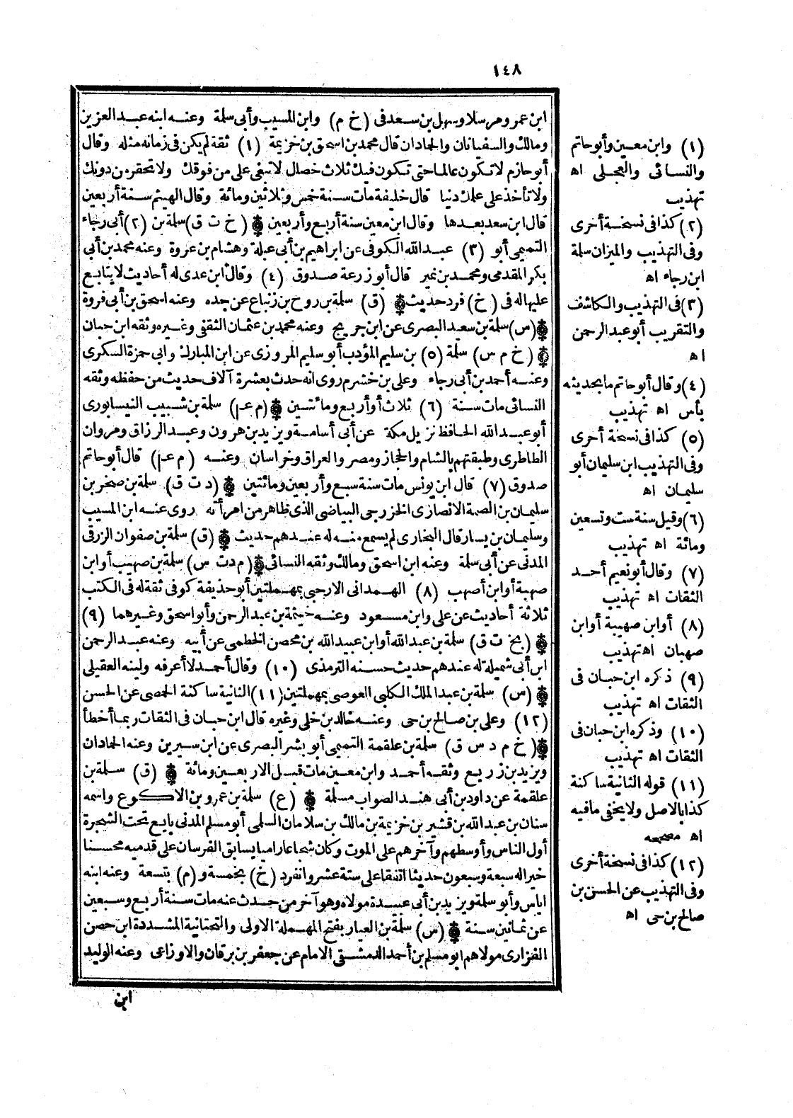 (م د ت س) سَلمَة بن صُهَيْب أَو ابْن صهبة أَو ابْن أصهب (8) الْهَمدَانِي الأرحبي بمهملتين أَبُو حُذَيْفَة كُوفِي ثِقَة لَهُ فِي الْكتب ثَلَاثَة أَحَادِيث عَن عَليّ وَابْن مَسْعُود وَعنهُ خَيْثَمَة بن عبد الرَّحْمَن وَأَبُو إِسْحَاق وَغَيرهمَا (9)
